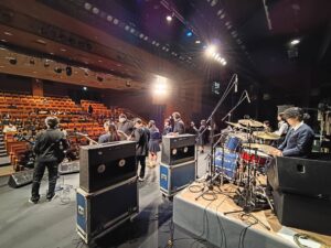 この写真は【県選抜バンド】のリハーサルの様子です。【県選抜バンド】とは、和歌山県高文連軽音楽部会に所属する学校から選抜メンバーを選び、バンドを編成して各種イベントやライブに出演する、というものです。2026年のメンバーは