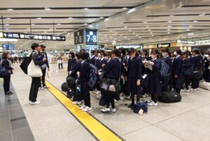 本日から中学2年生は長崎へ2泊3日の研修旅行に出かけています。いつもより1時間早く7時半の集合でしたが、全員が時間内に集合し、幸先の良いスタートを切りました。保護者の方には忙しい朝の時間に今日の昼食の準備、お見送りなどご協力をいただき、ありがとうございます。おかげさまで無事みんなが予定通り出発しました。