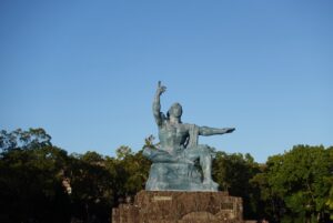 原爆資料館では80年前に起こった悲惨な出来事を、展示品や手記を目の当たりにすることで、よりリアルに感じることができました。思わず目を背けたくなるものもたくさんありましたが、みんな真剣に見学し、見学を終えた後には重い空気が漂っていました。今なお原爆の被害に苦しみ続けている人が多く、80年前のその日は決して過去のことではないのだと、ガイドさんがお話してくださいました。それまでの生活を一瞬で奪われた方々の苦悩に思いを馳せ、その後の平和セレモニーでは万感の思いを込めてお祈りを捧げました。