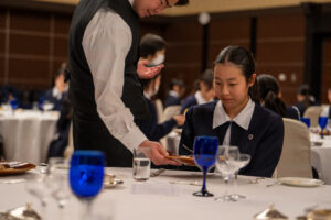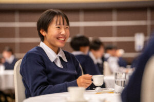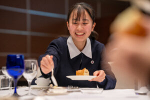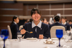 家庭科の授業の一環として毎年行われているこの行事。 ホテルに到着した時は、ずらりと並んだカトラリーを前に少し緊張した空気が漂っていましたが、講師の方が丁寧に教えてくださったおかげで、すぐにリラックスして食事を楽しむことができました😌