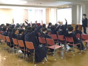 丁寧にわかりやすくお話していただき、生徒たちも熱心に議論を進めたり、発表したりと有意義な講演会になりました。ありがとうございました。