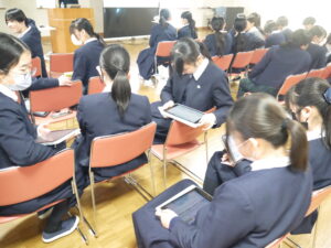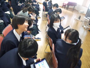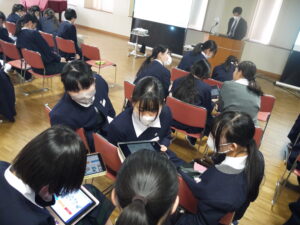 丁寧にわかりやすくお話していただき、生徒たちも熱心に議論を進めたり、発表したりと有意義な講演会になりました。ありがとうございました。