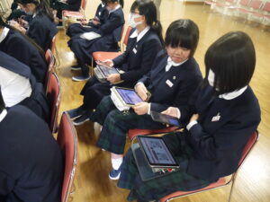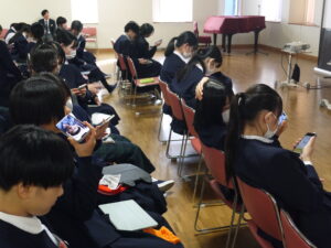 お話が身近な内容で、特に使用時間の制限に関するお話には共感する生徒も多いようでした。詐欺や闇バイト等、自分とは縁のない話だと思っていることも巻き込まれてしまう可能性は誰にでもあるということを学びました。