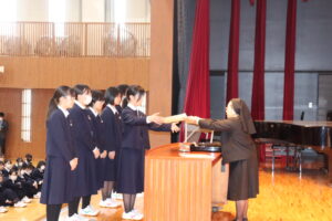 また、軽音楽部の表彰や新任の先生方の紹介などもありました。さあ、それぞれ新しい学年で、一歩成長した姿を見せていってください。がんばっていきましょう!